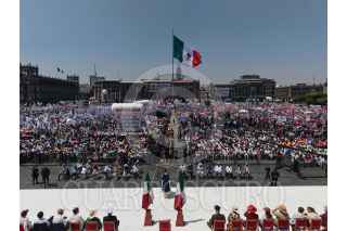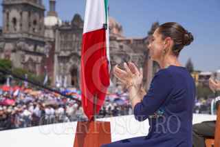 CIUDAD DE MÉXICO, 09MARZO2025.- Claudia Sheinbaum, Presidenta de México, encabezó una asamblea Informativa ante ciudadanos en el Zócalo, ahí informo de aplazamiento de los aranceles que el gobierno estadounidense había anunciado para este mes, y llamo a la unidad nacional ante discursos extranjeros que pretenden minimizar la importancia de los mexicanos en el mundo pero sobre todo en Estados Unidos. FOTO: PRESIDENCIA/CUARTOSCURO.COM