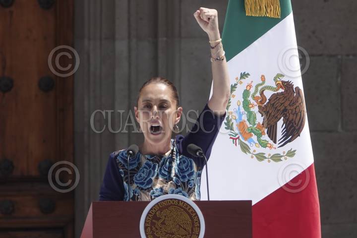 CIUDAD DE MÉXICO, 09MARZO2025.- Claudia Sheinbaum, presidenta constitucional de los Estados Unidos Mexicanos, presentó en el Zócalo capitalino su Asamble Informativa. FOTO: MAGDALENA MONTIEL/CUARTOSCURO.COM