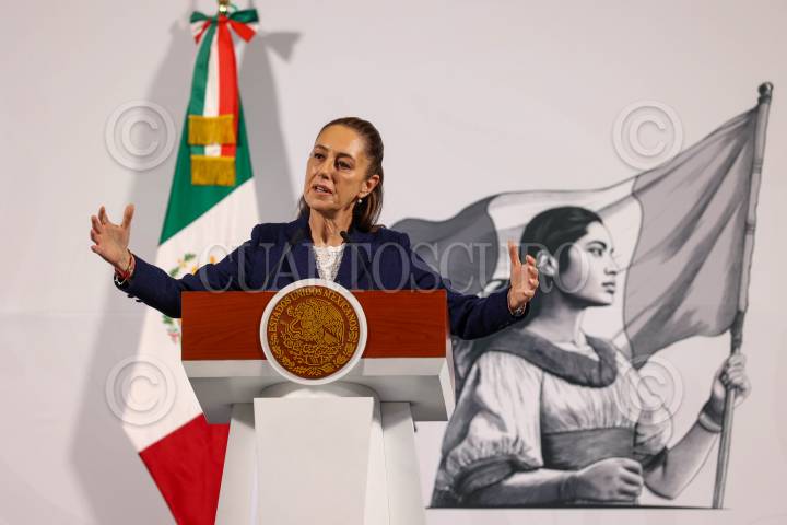 CIUDAD DE MÉXICO, 10MARZO2025.- Claudia Sheinbaum, Presidenta de México, habló sobre el supuesto desaire de la dirigencia de Morena durante la asamblea informativa que encabezo el día de ayer en el Zócalo, también abordo el tema de los aranceles y de la salida del secretario de Hacienda, Rogelio Ramírez de la O, durante la conferencia del pueblo en Palacio Nacional. FOTO: MOISÉS PABLO/CUARTOSCURO.COM