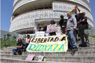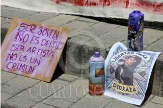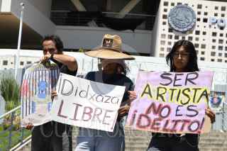 SAN BARTOLO COYOTEPEC, OAXACA, 11MARZO2025.- Este día familiares y amigos de la artista y tatuadora zapoteca Didxazá García Martínez se manifiestan al exterior del Centro de Justicia del Poder Judicial de la Federación ubicado en el municipio conurbado de San Bartolo Coyotepec, para exigir justicia y su liberación inmediata. García Martínez fue detenida el pasado 04 de marzo en Juchitán de Zaragoza, en la región del Istmo de Tehuantepec, cuando regresaba de realizar un trabajo de tatuaje a dos personas que ofrecieron llevarla hacia su vivienda, el vehículo en el que se trasladaban fue revisado en un retén y se encontró un arma de fuego, por lo que fueron detenidos. Los manifestantes afirmaron que la artista de 21 años de edad ha demostrado su no participación en algún hecho delictivo, sin embargo, sigue el proceso judicial. FOTO: CAROLINA JIMÉNEZ MARISCAL/CUARTOSCURO.COM