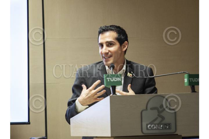 CIUDAD DE MÉXICO, 11MARZO2025.- Romel Pacheco Marrufo, director de la comisión nacional cultura física y deporte durante conferencia de prensa para hablar sobre el evento de natación World Aquatics diving world cup que se llevará a cabo del 3 a 9 de abril en la Ciudad de Guadalajara. FOTO: ANDREA MURCIA /CUARTOSCURO.COM