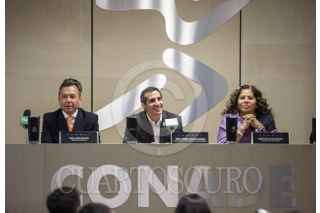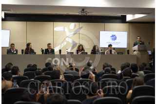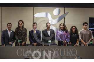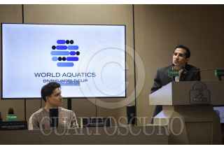 CIUDAD DE MÉXICO, 11MARZO2025.- Luis Fernando Ortega Ramons. Director Code Jalisco; Andrea Blanco Calderon, coordinadora general estrategia y desarrollo social; Pablo Lemus Navarro, Gobernador de Jalisco; Romel Pacheco Marrufo, director de la comisión nacional cultura física y deporte; María José Alcalá Izguerra, presidenta del Comité olímpico Mexicano; Gabriela Guillen Agundez Garcia, Medallista Olimpica y Osmar Olvera, medallista Olímpico ofrecieron conferencia de prensa para hablar sobre el evento de natación World Aquatics diving world cup que se llevará a cabo del 3 a 9 de abril en la Ciudad de Guadalajara. FOTO: ANDREA MURCIA /CUARTOSCURO.COM
