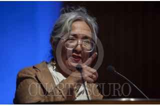 CIUDAD DE MÉXICO, 11MARZO2025.- La escritora Cristina Rivera Garza presidio conferencia inaugural del ciclo táctil en el Colegio Nacional. FOTO: ANDREA MURCIA /CUARTOSCURO.COM