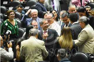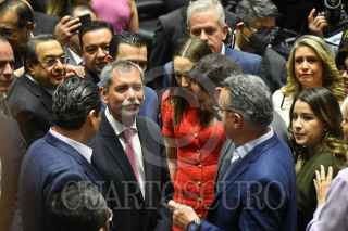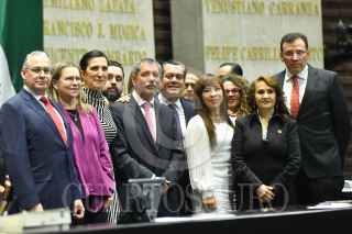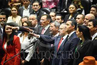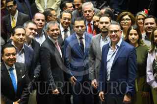 CIUDAD DE MÉXICO, 12MARZO2025.- Édgar Amador Zamora, durante la sesión ordinaria de la Cámara de Diputados fue ratificado como Secretario de Hacienda y Crédito Público. En la imagen, el nuevo secretario junto a legisladores del grupo parlamentario del PAN. FOTO: MARIO JASSO/CUARTOSCURO.COM