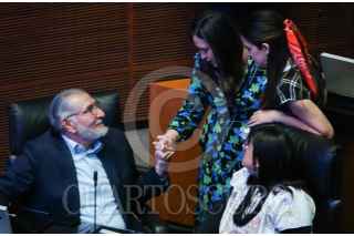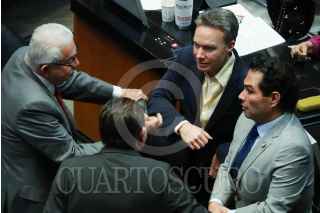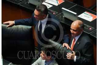 CIUDAD DE MÉXICO, 12MARZO2025.- El senador morenista Manuel Rafael Huerta Ladrón de Guevara y Gerardo Fernández Noroña, presidente del Senado, durante la sesión del pleno de la Cámara de Senadores. FOTO: GALO CAÑAS/CUARTOSCURO.COM