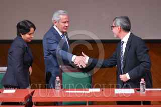CIUDAD DE MÉXICO, 13MARZO2025.- Edgar Amador Zamora, secretario de Hacienda y Crédito Público, y Graciela Márquez, presidenta del INEGI, durante la presentación de los resultados de la Encuesta Nacional de Inclusión Financiera (ENIF) realizada en las instalaciones de Nacional Financiera. FOTO: MARIO JASSO/CUARTOSCURO.COM