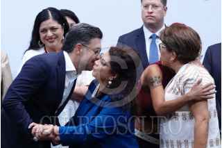 CIUDAD DE MÉXICO, 13MARZO2025.- Clara Brugada, jefa de Gobierno, acompañada de Martha Ávila, presidenta de la mesa directiva en el Congreso Local, y Alejandra Frausto, secretaria de Turismo en la capital, durante el evento en donde anunció que queda prohibida la tauromaquia con violencia, impulsando una reforma que elimina el sacrificio con espectáculo taurino libre de violencia para transformar la tauromaquia en la capital. El evento se realizó en el Palacio del Ayuntamiento. FOTO: GRACIELA LÓPEZ/CUARTOSCURO.COM