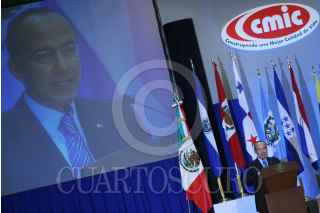 MÉXICO,D,F.,16OCTUBRE2007.- Felipe Calderon Hinojosa Presidente de los Estados Unidos Mexicanos,da un recorrido a las instalaciones durante la inaguración del XXVI congreso Interamericano de la Industria de la construcción y XIX exposición Internacional de la Costrucción y la Habitación. FOTO: SASHENKA GUTIERREZ/CUARTOSCURO.COM