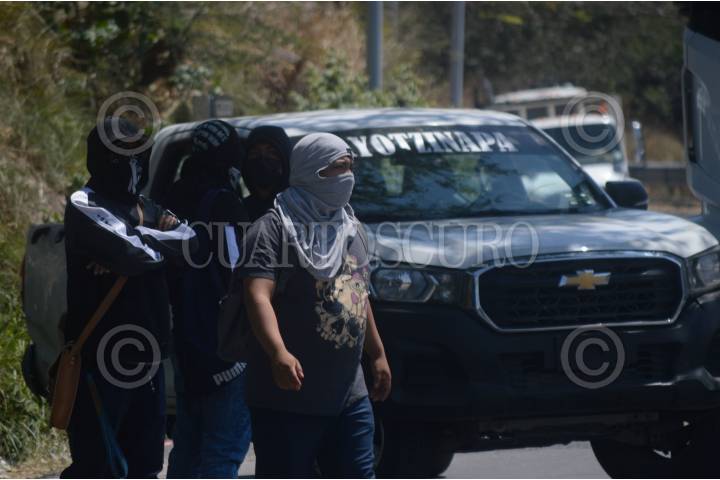 CHILPANCINGO, GUERRERO, 13MARZO2025.- Por tercer día consecutivo, estudiantes de la Escuela Normal Rural "Raul Isidro Burgos" de Ayotzinapa bloquearon la Autopista del Sol, a la altura del Parador del Marqués, en rechazo a las declaraciones del secretario de Educación, Ricardo Castillo Peña y las fallas en la plataforma del UESICAM. La caravana de autobuses salió de la normal a las 10:30 de la mañana con rumbo a Chilpancingo, pero su camino se detuvo por varias horas a causa de un bloqueo de maestros del SUSPEG en el boulevard a la altura de Invisur. En ese punto, los normalistas retuvieron un camión que transportaba cajas para pollos y lo atravesaron en la carretera federal para bloquear la vialidad del carril sur-norte. Un bloque de cuatro camionetas se separó del grupo y se dirigieron a la colonia Infonavit, dónde se ubicaban las oficinas del UESICAM, posiblemente para ocasionar algún destrozo. Sin embargo, al llegar al lugar y percatarse que las oficinas ya no se encontraban en ese punto, abordaron las camionetas y se marcharon del lugar. FOTO: DASSAEV TÉLLEZ ADAME/CUARTOSCURO.COM