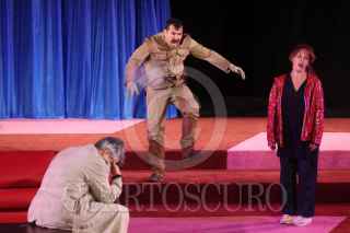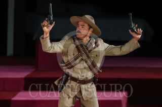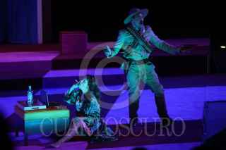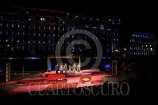 CIUDAD DE MÉXICO, 13MARZO2025. Se llevó a cabo la primera presentación de la puesta en escena “Entre Pancho Villa y una mujer desnuda” en el zócalo capitalino, donde Moisés Arizmendi, Roberto Cáceres y Mariana Gajá actúan. Esto como parte del Festival por la Igualdad 2025, con 18 funciones totalmente gratuitas los visitantes a la Plaza de la Constitución podrán disfrutar de esta obra de teatro hasta el 6 de abril. FOTO: EDGAR NEGRETE LIRA/CUARTOSCURO.COM