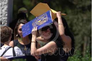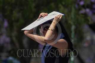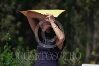CIUDAD DE MÉXICO 14MARZO2025.- Con gorros que cubren todo el rostro, hasta los papeles de titulación de la UNAM capitalinos hacen de todo para cubrirse de los intensos rayos del sol que en su máxima alcanzará los 30 grados centígrados. FOTO: ROGELIO MORALES CUARTOSCURO.COM