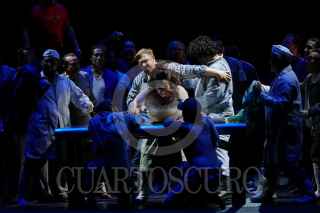 CIUDAD DE MÉXICO, 14MARZO2025.- Aspectos del ensayo a medios de la ópera Lady Macbeth de Mtsensk en la sala principal del Palacio de Bellas Artes. La puesta en escena se presenta como un retrato psicológico y una crítica social a la violencia y el patriarcado que ha imperado en el mundo desde siglos atrás. También es una invitación a reflexionar sobre los motivos que llevan a una mujer a cometer una serie de crímenes, mostrando un marco de corrupción, degradación moral y opresión machista-patriarcal. FOTO: GALO CAÑAS/CUARTOSCURO.COM