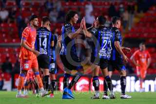 QUERÉTARO, QUERÉTARO, 14MARZO2025.- Jugadores de Queretaro en festejo durante el partido de la jornada 12 del Torneo Clausura 2025 de la Liga BBVA MX en el Estadio Corregidora el 14 de Marzo de 2025 en Queretaro. FOTO: CÉSAR GÓMEZ/CUARTOSCURO.COM