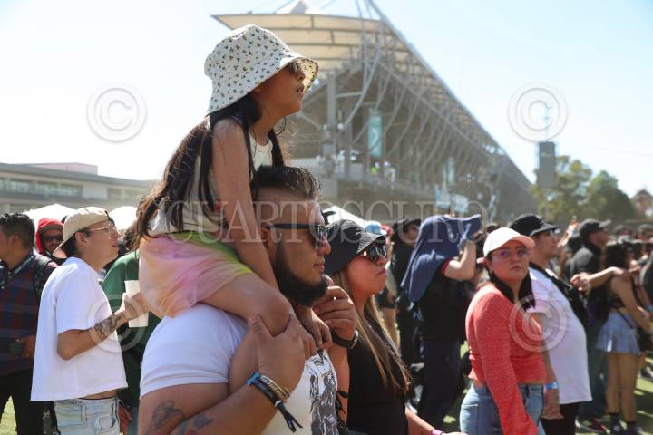 CIUDAD DE MÉXICO, 15MARZO2025. Una niña es cargada por su papá durante el primer día del Festival Iberoamericano de Cultura Musical Vive Latino, en su edición número 25, en el Estadio GNP Seguros de la capital del país. FOTO: EDGAR NEGRETE LIRA/CUARTOSCURO.COM