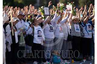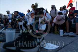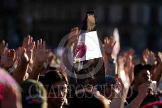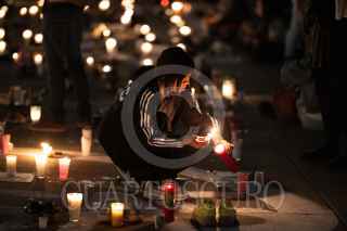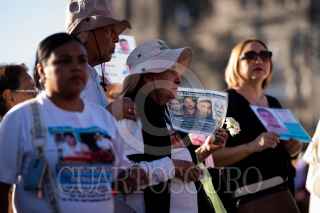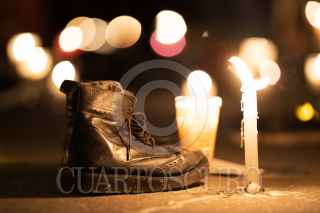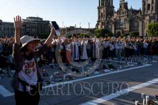 CIUDAD DE MÉXICO, 15MARZO2025.- Cientos de familiares de personas desaparecidas, así como población civil se dieron cita en el Zócalo ante la convocatoria de luto nacional por los hechos ocurridos en Teuchitlán, Jalisco dónde fue asegurado un predio con presuntos crematorios clandestinos, así como 400 pares de zapatos de personas que fueron reclutadas de manera forzada para servir al crimen organizado. Las y los familiares clamaron al gobierno federal justicia y atención ante la creciente crisis de desapariciones forzadas que azota al país y que tiene un foco rojo en el estado gobernado actualmente por Pablo Lemus. Las familias colocaron pares de zapatos con veladoras a manera de homenaje y en memorias de a quienes continúan buscando. FOTO: GALO CAÑAS/CUARTOSCURO.COM