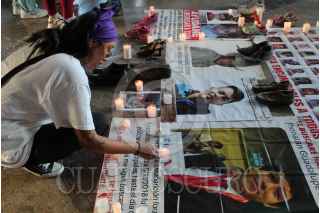 CHILPANCINGO, GUERRERO, 15MARZO2025.- Integrantes del Colectivo Memoria, Verdad y Justicia del puerto de Acapulco y Chilpancingo se unieron a la Vigilia y Luto Nacional por las víctimas deL rancho Izaguirre en Teuchitlán, Jalisco. Las buscadoras se dijeron solidarias con las familias de quienes fueron llevados al Centro clandestino de reclutamiento, entrenamiento y exterminio localizada por el colectivo "Guerreros Buscadores". Las buscadoras pegaron en el lugar fotografías de personas desaparecidas, que ya en Guerrero se contabilizan más de 4 mil 200 y revelaron que entre los restos localizados en Jalisco fue encontrado el cuerpo de un joven de la Región de La Montaña, que las autoridades de ese estado entregaron a sus familiares. FOTO: DASSAEV TÉLLEZ ADAME/CUARTOSCURO.COM