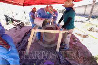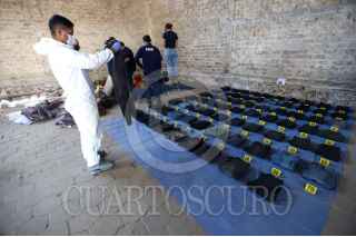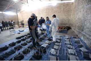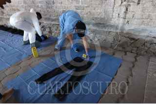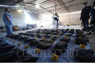 TEUCHITLÁN, JALISCO, 16MARZO2025.- La Fiscalía del Estado de Jalisco realizó una jornada de trabajo junto con integrantes del colectivo Guerreros Buscadores de Jalisco el 13 de marzo de 2025 en el Rancho Izaguirre, con el fin de verificar si habías más restos humanos. Las autoridades han descartado que aquí hubiera estructuras que fungieran como crematorios, aunque los buscadores afirmaron que si había restos humanos quemados cuando ellos llegaron al lugar hace una semana. Hasta el momento se ha confirmado que podría ser un campo de adestramiento del grupo criminal CJNG. Ayer se realizó una jornada de luto nacional por todas las víctimas que han perecido en este tipo de campos a lo largo de todo el país. La fiscalía de jalisco no ha precisado un número exactos de víctimas que pudieron ser asesinados en este predio, pero se cuentan por decenas los pares de zapatos y ropa que están ahí abandonados, y que vislumbra el número de todas las personas que en algún momento habitaron el lugar. FOTO: FISCALÍA DEL ESTADO DE JALISCO/CUARTOSCURLOCM