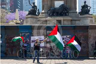 CIUDAD DE MÉXICO, 16MARZO2025.- Ciudadanos se manifestaron a favor del pueblo palestino y repudiaron lo que ellos llamaron "genocidio" por parte de Israel, durante un conflicto que ha durado más de un año. Cada domingo personas se reúnen en las inmediaciones del Ángel de la Independencia para lanzar consignas. FOTO: MOISÉS PABLO/CUARTOSCURO.COM