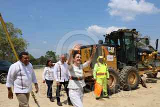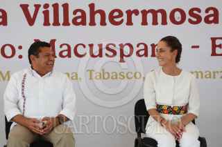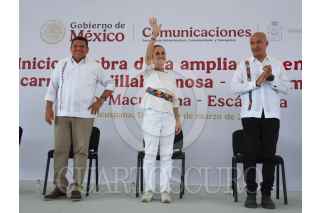 MACUSPANA, TABASCO, 16MARZO2025.- Javier May Rodríguez, gobernador de Tabasco; Claudia Sheinbaum, Presidenta de México, y Jesús Esteva, secretario de Infraestructura, Comunicaciones y Transporte, encabezaron el inicio de obra de la ampliación de la carretera Macuspana-Escárcega, en el kilómetro 53 de la carretera José María Pino Suárez. FOTO: PRESIDENCIA/CUARTOSCURO.COM