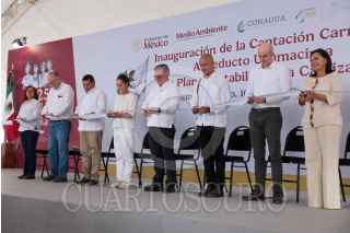 VILLAHERMOSA, TABASCO, 16MARZO2025.- Javier May Rodríguez, gobernador de Tabasco; Claudia Sheinbaum, Presidenta de México, y Jesús Esteva, secretario de Infraestructura, encabezaron la inauguración de la Plata Potabilizadora "El Carrizal II", ubicada en la carretera Bosque de Saloya, colonia Ranchería Emiliano Zapata. FOTO: PRESIDENCIA/CUARTOSCURO.COM