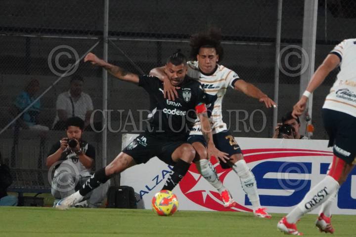 CIUDAD DE MÉXICO, 16MARZO2025.- Adalberto Carrasquilla, Centrocampista de Pumas y Luis Ricardo Reyez, Defensor de los Rayados de Monterrey durante el partido de la Jornada 12. Rayados venció 1-3 a Pumas en el Estadio Olímpico Universitario. FOTO: MAGDALENA MONTIEL/CUARTOSCURO.COM
