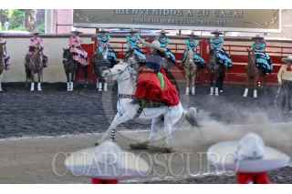 CIUDAD DE MÉXICO, 17MARZO2025.- El coordinador técnico de Cultura y Deporte del Instituto Mexicano del Seguro Social (IMSS), Héctor García Antonio, encabezó el evento “Cuna de la 1er Feria de Escaramuzas a Nivel Nacional IMSS 2025”, que busca promover la adopción de hábitos saludables a través del deporte para prevenir enfermedades crónico-degenerativas y reducir la tasa de obesidad en niñas y niños en etapa escolar. En el Lienzo Charro “Carlos Rincón Gallardo” se dieron cita más de 16 equipos femeniles que forman parte de los primeros planos nacionales de la Asociación Deportiva Institucional de Charros del IMSS, a través de los cuales, el Seguro Social busca relanzar esta disciplina y tener presencia en competencias de talla internacional. Durante el evento, los equipos representativos conformados por ocho mujeres hicieron gala de sus vestidos de adelitas y ejecutaron rutinas a caballo donde dieron muestra de esta tradición mexicana que busca acercar a la comunidad a esta tradición. FOTO: IMSS/CUARTOSCURO.COM