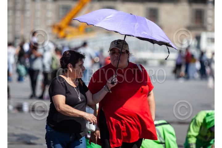CIUDAD DE MÉXICO, 17MARZO2025.- Continúa la alerta amarilla por altas temperaturas. En la imagen capitalinos aprovechan el puente para visitar el primer cuadrante del Centro histórico resguardándose del sol. FOTO: ANDREA MURCIA /CUARTOSCURO.COM