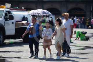 CIUDAD DE MÉXICO, 17MARZO2025.- Continúa la alerta amarilla por altas temperaturas. En la imagen capitalinos aprovechan el puente para visitar el primer cuadrante del Centro histórico resguardándose del sol. FOTO: ANDREA MURCIA /CUARTOSCURO.COM