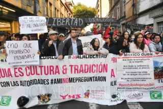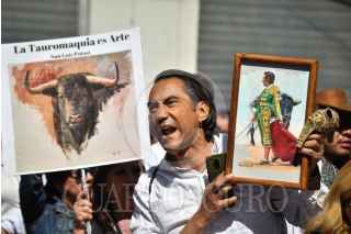CIUDAD DE MÉXICO, 18MARZO2025.- Personas a favor de la tauromaquia se manifiestan al exterior del Congreso Capitalino en donde se discutirá el dictamen que prohíbe las corridas de toros con violencia. FOTO: MARIO JASSO/CUARTOSCURO.COM