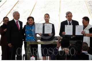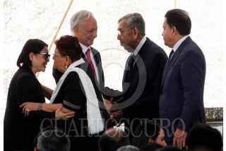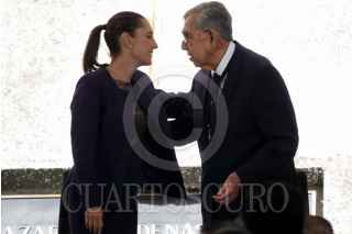 CIUDAD DE MÉXICO, 18MARZO2025.- Emilia Esther Calleja, directora general de la Comisión Federal de Electricidad (CFE); Ernestina Godoy, consejera jurídica de la Presidencia; Victor Rodríguez Padilla, director general de Petróleos Mexicanos; el ingeniero Cuauhtémoc Cárdenas Solorzano y Ricardo Aldana, líder del Sindicato de Trabajadores Petroleros de la República Mexicana (STPRM), se despiden tras la ceremonia de conmemoración del 87 aniversario de la "Expropiación Petrolera" en las inmediaciones de la Torre de Petróleos Mexicanos (PEMEX) en la alcaldía Miguel Hidalgo. Durante el acto la mandataria firmó el decreto de reforma para fortalecer a La Comisión Federal de Electricidad (CFE) y a PEMEX. FOTO: GALO CAÑAS/CUARTOSCURO.COM