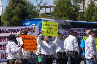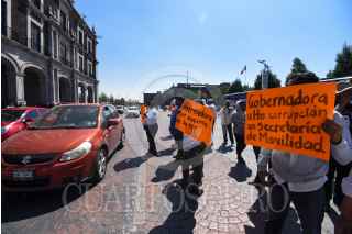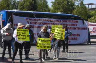 TOLUCA, ESTADO DE MÉXICO, 18MARZO2025.- Transportistas de Zumpango y Tecámac se manifestaron en Palacio de Gobierno pidiendo la intervención del gobierno estatal en la invasión de rutas, así como agresiones y robos de las que son objeto de manera constante, denunciaron que han acudido a SEMOV pero hasta el momento no les han solucionado nada. FOTO: CRISANTA ESPINOSA AGUILAR /CUARTOSCURO.COM