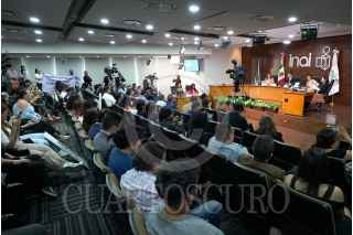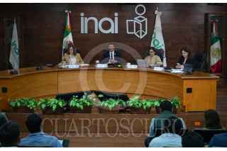 CIUDAD DE MÉXICO 18MARZO2025.- Adrián Alcalá, consejero presidente del INAI, Blanca Ibarra, Josefina Román y Norma Julieta del Río, comisionadas del Instituto Nacional de Transparencia, Acceso a la Información y Protección de Datos Personales, durante la Sesión Ordinaria en el Pleno del Instituto. FOTO: ROGELIO MORALES CUARTOSCURO.COM
