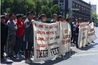 TOLUCA, ESTADO DE MÉXICO, 18MARZO2025.- Un grupo de estudiantes de la Escuela Normal Rural de Tenería “Lázaro Cárdenas del Río” en Tenancingo se manifestaron en Palacio de Gobierno para pedir una audiencia con la Gobernadora Delfina Gómez y exigir se cumplan los acuerdos que se tienen con SEIEM. FOTO: CRISANTA ESPINOSA AGUILAR /CUARTOSCURO.COM