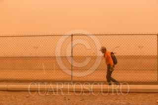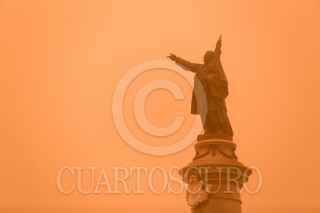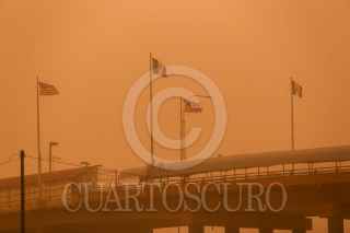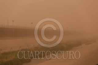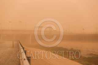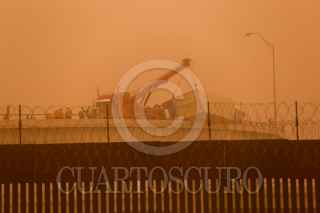 CIUDAD JUÁREZ, CHIHUAHUA, 18MARZO2025.- Nuevamente en Ciudad Juárez y El Paso Texas se registra una tormenta de arena con rachas de viento de hasta 100 km/h, por lo que autoridades de México y Estados Unidos emitieron una alerta. Debido a estos vientos hubo una volcadura de un tráiler en un puente en El Paso. FOTO: CARLOS SÁNCHEZ COLUNGA/CUARTOSCURO.COM