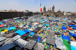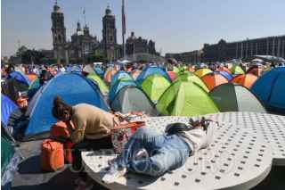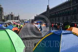 CIUDAD DE MÉXICO, 19MARZO2025.- Cientos de maestros de la Coordinadora Nacional de Trabajadores de la Educación (CNTE) instalaron un plantón en la plancha del zócalo como protesta ante la iniciativa de ley del ISSSTE, la cual ya fue descartada recientemente por parte del gobierno federal. FOTO: MARIO JASSO/CUARTOSCURO.COM
