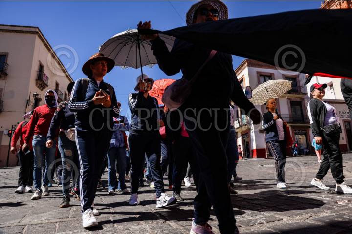 ZACATECAS, ZACATECAS, 19MARZO2025.- Maestros de la Coordinadora Nacional de Trabajadores de la Educación y del Sindicato Nacional de Trabajadores de la Educación sección 34 (regiones Guadalupe-Zacatecas), marcharon por las principales calles de la ciudad hasta llegar al Congreso del Estado, como parte del Paro Nacional y acciones de lucho en contra de la abrogación de la Ley del ISSSTE. FOTO: ADOLFO VLADIMIR /CUARTOSCURO.COM