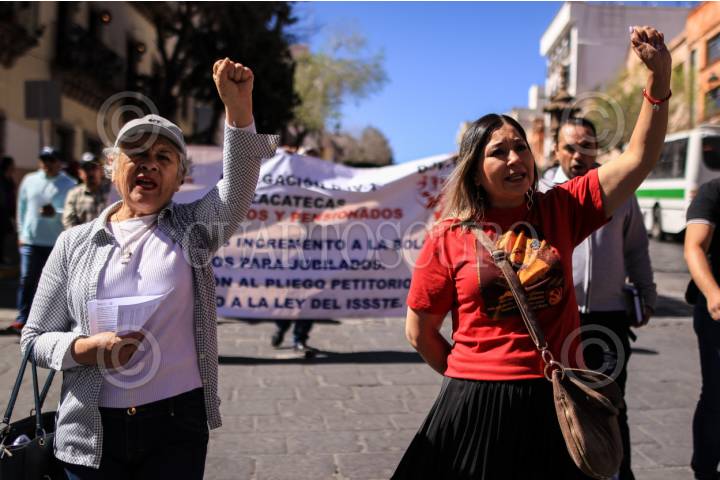 ZACATECAS, ZACATECAS, 19MARZO2025.- Maestros de la Coordinadora Nacional de Trabajadores de la Educación y del Sindicato Nacional de Trabajadores de la Educación sección 34 (regiones Guadalupe-Zacatecas), marcharon por las principales calles de la ciudad hasta llegar al Congreso del Estado, como parte del Paro Nacional y acciones de lucho en contra de la abrogación de la Ley del ISSSTE. FOTO: ADOLFO VLADIMIR /CUARTOSCURO.COM