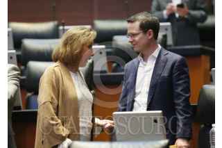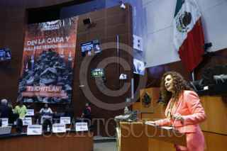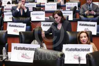 CIUDAD DE MÉXICO, 19MARZO2025.- Las senadoras Lilly Téllez y Guadalupe Murguía durante su intervención en la sesión en el Senado, en donde la bancada panista se manifestaron por los hallazgos de violencia que se descubrieron en el rancho Izaguirre en Teuchitlán, Jalisco. FOTO: CUARTOSCURO.COM