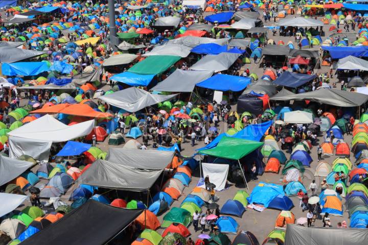 CIUDAD DE MÉXICO, 19MARZO2025.- Cientos de maestros de la Coordinadora Nacional de Trabajadores de la Educación (CNTE) instalaron un plantón en la plancha del zócalo como protesta ante la iniciativa de ley del ISSSTE, la cual ya fue descartada recientemente por parte del gobierno federal. FOTO: MARIO JASSO/CUARTOSCURO.COM