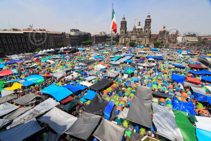 CIUDAD DE MÉXICO, 19MARZO2025.- Cientos de maestros de la Coordinadora Nacional de Trabajadores de la Educación (CNTE) instalaron un plantón en la plancha del zócalo como protesta ante la iniciativa de ley del ISSSTE, la cual ya fue descartada recientemente por parte del gobierno federal. FOTO: MARIO JASSO/CUARTOSCURO.COM