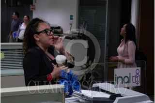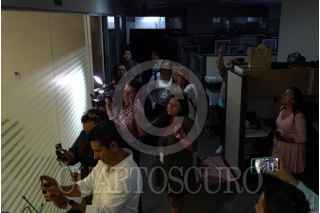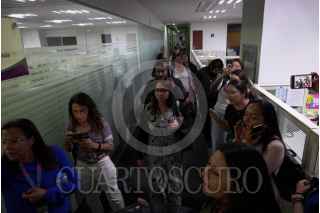 CIUDAD DE MÉXICO, 19MARZO2025.- Comisionados del Instituto Nacional de Transparencia, Acceso a la Información y Protección de Datos Personales, realizan la última sesión atrincherados dentro del edificio del INAI. En este sentido un grupo de trabajadores ingreso al recinto para presionar a los comisionados encontrándose con cortes de luz en distintos pisos y obstáculos para pedir los accesos a oficinas . FOTO:ROGELIO MORALES/CUARTOSCURO.COM