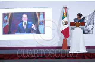 CIUDAD DE MÉXICO, 20MARZO2025.- Esteban Villegas Villareal, gobernador de Durango, sostuvo un enlace en vivo con Claudia Sheinbaum, presidenta de los Estados Unidos Mexicanos, durante la Mañanera del Pueblo realizada en Palacio Nacional. FOTO: GRACIELA LÓPEZ/CUARTOSCURO.COM