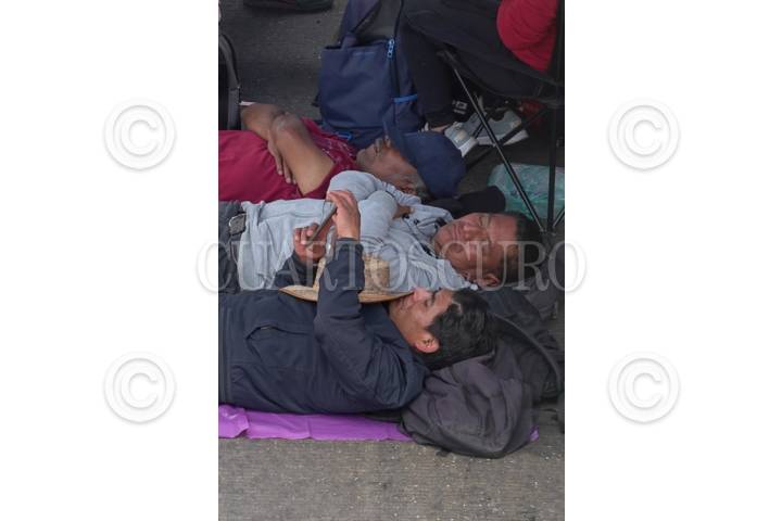 CIUDAD DE MÉXICO, 20MARZO2025.- Integrantes de la Coordinadora Nacional de Trajadores de la Educación, juegan cartas, observanas llegadas de aviones y hasta duermen bajo alguna sombra, esto mientras bloquean ambos sentidos Circuito Interior, generando caos vial en la periferia del Aeropuerto. FOTO:ROGELIO MORALES/CUARTOSCURO.COM