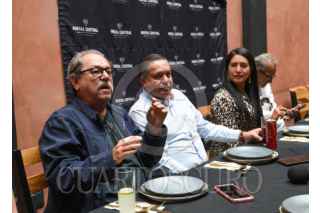 TOLUCA, ESTADO DE MÉXICO, 20MARZO2025.- David Constantino Alfaro Siqueiros, nieto del artista plástico mexicano David Alfaro Siqueiros, Francisco Ignacio Taibo Mahojo, director general del Fondo de Cultura Económica, Ricardo Moreno, alcalde de Toluca y Nelly Carrasco, Secretaria de Cultura y Turismo del Estado de México, sostuvieron un encuentro después de la inauguración de la exposición “Siqueiros Desde la Intimidad” instalada en el Museo del Alfeñique de Toluca abierta al público hasta el 19 de mayo, así como una firma de convenio entre el Gobierno del Edoméx, FCE y el Ayuntamiento de Toluca para fortalecer la difusión y acceso a la cultura para los mexiquense, impulsando la “Revolución Cultural”. FOTO: CRISANTA ESPINOSA AGUILAR /CUARTOSCURO.COM