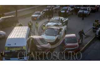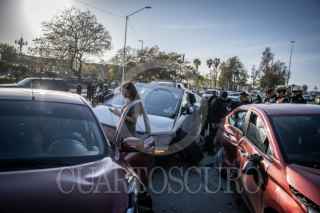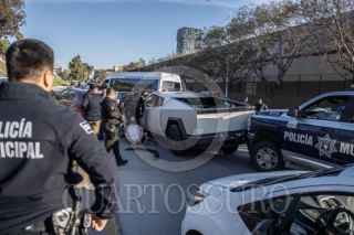 TIJUANA BAJA CALIFORNIA 20MARZO2025.-Una persecución protagonizada por un hombre de la tercera edad a bordo de un Tesla Cybertruck terminó en una carambola con alrededor de seis vehículos involucrados, entre ellos un transporte público. De acuerdo con información extraoficial, los hechos ocurrieron la tarde del jueves cuando el conductor del Tesla fue detenido por autoridades en la Zona Centro por una infracción de tránsito. Al llegar la grúa, el hombre emprendió la huida, lo que desató la persecución. Sobre el bulevar Paseo de los Héroes, a la altura del Costco de la Zona Río, el Tesla terminó impactándose contra varios vehículos, los cuales a su vez colisionaron entre sí. Los autos involucrados fueron: una unidad transporte público, un Honda, un Nissan March, un Neón y una Ford Escape. Como resultado, cuatro personas resultaron lesionadas: dos hombres y dos mujeres, quienes fueron atendidos por paramédicos en el lugar.Algunos de los conductores afectados comentaron que vieron al Tesla venir a alta velocidad, pero no esperaban que los impactara. "Cuando menos pensamos, ya era una carambola", señalaron. Agentes de la Policía Municipal lograron detener al hombre de la tercera edad, quien se identificó como veterano y se presume que estaba bajo los efectos de sustancias prohibidas. FOTO: OMAR MARTÍNEZ/ CUARTOSCURO.COM