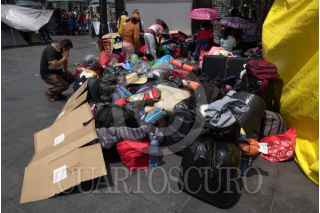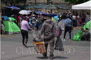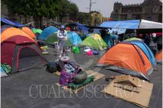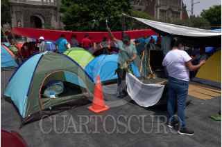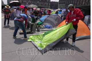 CIUDAD DE MÉXICO 21MARZO2025.- Luego de un paro nacional y un plantón de 72 horas, integrantes de la Coordinadora Nacional de Trajadores de la Educación, comenzaron a levantar sus casas de campar y lonas del campamento que mantenian en la explanada del Zócalo capitalino. FOTO: ROGELIO MORALES CUARTOSCURO.COM