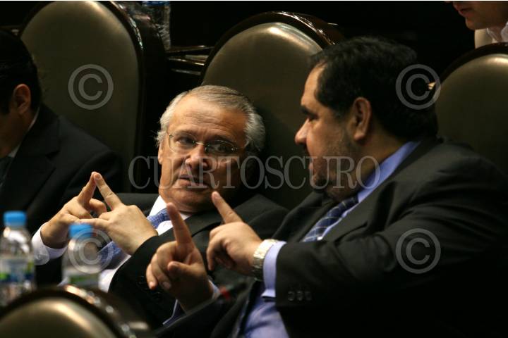 MÉXICO D.F. 17OCTUBRE.-El diputado del PAN, Juan José Rodríguez Prats dialoga con Hector Larios coordinador de la bancada del PAN durante la sesión en la Cámmar de Diputados. FOTO: GUILLERMO PEREA/CUARTOSCURO.COM