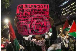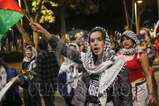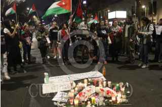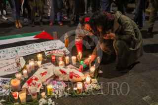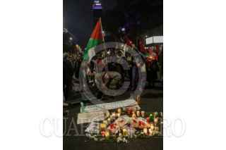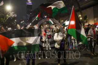 CIUDAD DE MÉXICO. 21MARZO2025.- Activistas por Palestina Libre, se manifestaron está noche en la entrada de la Cancillería Mexicana. Bloqueando la avenida Juárez con una vigilia, demandan que México se pronuncie ante los nuevos ataques sobre la población en la franja de Gaza. FOTO: VICTORIA VALTIERRA/CUARTOSCURO.COM