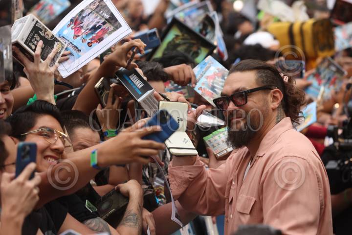 NAUCALPAN, ESTADO DE MÉXICO, 22MARZO2025. Jason Momoa a su paso por la alfombra verde del Fan Event de “Una película de Minecraft”, que se llevó a cabo en un centro comercial en el Estado de México. FOTO: EDGAR NEGRETE LIRA/CUARTOSCURO.COM