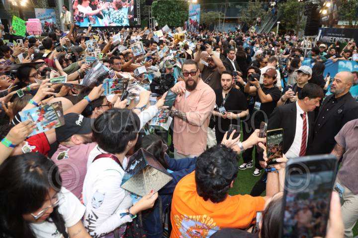 NAUCALPAN, ESTADO DE MÉXICO, 22MARZO2025. Jason Momoa a su paso por la alfombra verde del Fan Event de “Una película de Minecraft”, que se llevó a cabo en un centro comercial en el Estado de México. FOTO: EDGAR NEGRETE LIRA/CUARTOSCURO.COM